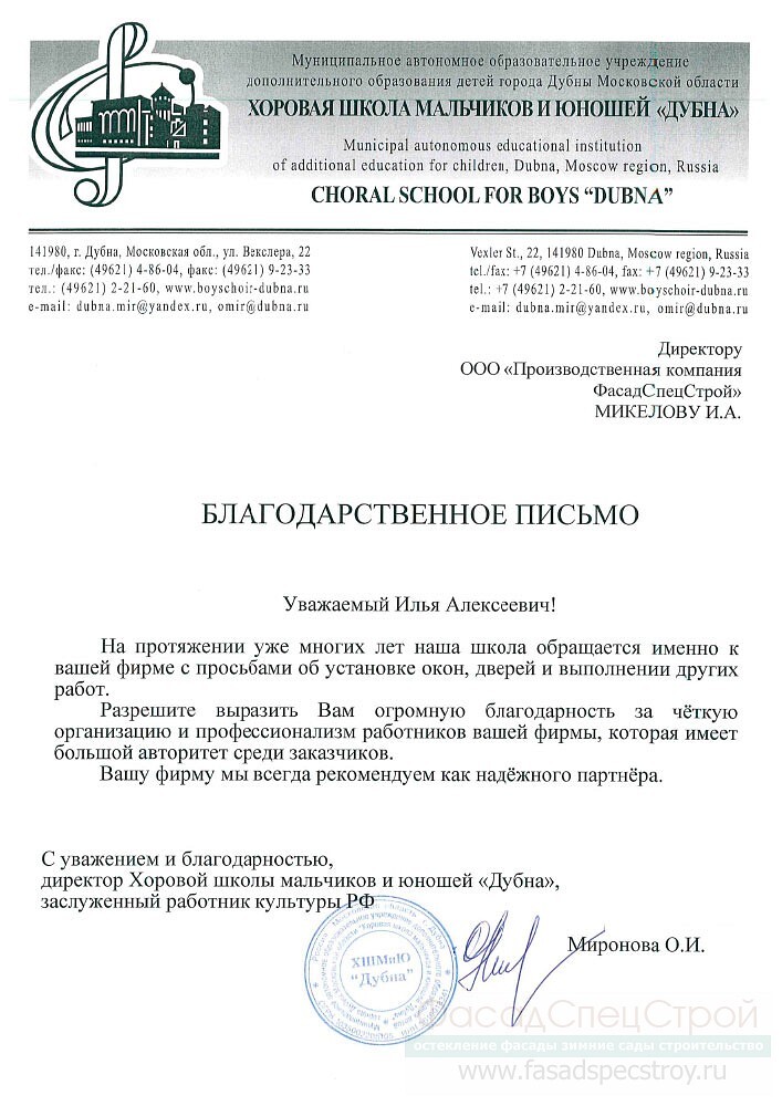 Хоровая школа мальчиков и юношей Дубна. Установка окон и дверей